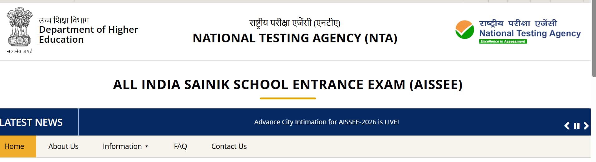 एआईएसएसईई की ऑफिशियल वेबसाइट https://exams.nta.nic.in/sainik-school-society/ है।