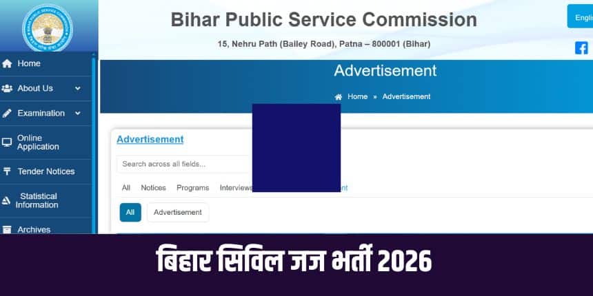 नई दिल्ली : बिहार लोक सेवा आयोग (बीपीएससी) की तरफ से 33वीं बिहार न्यायिक सेवा परीक्षा के अंतर्गत सिविल जज (जूनियर डिवीजन) के 173 पदों पर भर्ती का कल 18 मार्च 2026 आखिरी दिन है। पात्रता मानदंडों को पूरा करने वाले इच्छुक और पात्र उम्मीदवार आयोग की आधिकारिक वेबसाइट bpsc.bihar.gov.in के माध्यम से ऑनलाइन आवेदन कर सकते हैं।