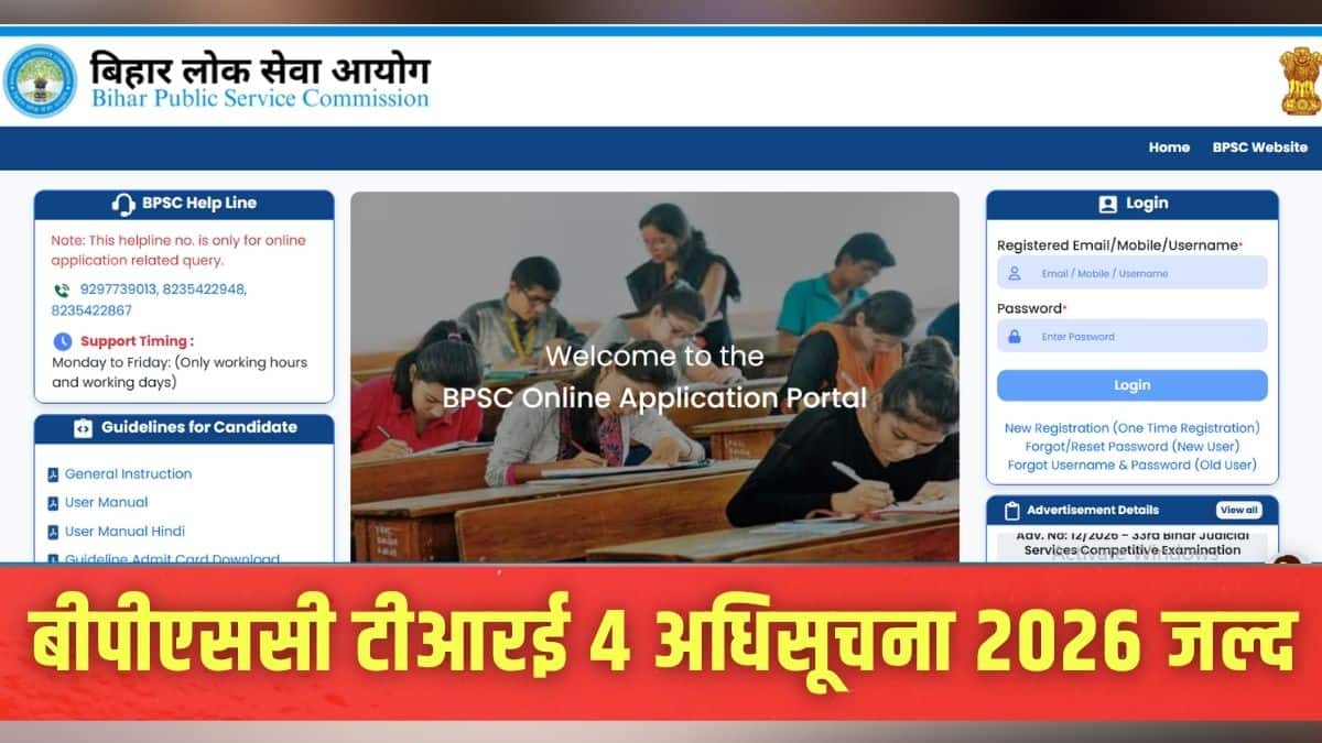 इस बार बीपीएससी टीआरई भर्ती प्रक्रिया में कुछ बदलाव किए गए हैं। बीपीएससी टीआरई 4 भर्ती 2026 परीक्षा 22 से 27 सितंबर के बीच होगी।
