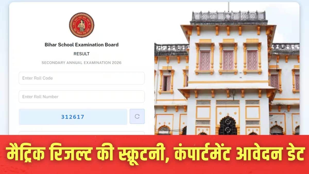 नई दिल्ली: बिहार स्कूल एग्जामिनेशन बोर्ड (बीएसईबी) ने आज बिहार बोर्ड मैट्रिक रिजल्ट 2026 जारी कर दिया है। बिहार बोर्ड कक्षा 10 रिजल्ट के बाद, स्क्रूटनी और कंपार्टमेंट परीक्षाओं के लिए आवेदन 1 अप्रैल से शुरू होंगे। जो छात्र अपने अंकों से असंतुष्ट हैं, वे स्क्रूटनी (पुनर्मूल्यांकन) के लिए आवेदन कर सकते हैं; वहीं, जो छात्र एक या दो विषयों में फेल हो गए हैं, वे कंपार्टमेंट परीक्षा के लिए आवेदन करने के पात्र होंगे।