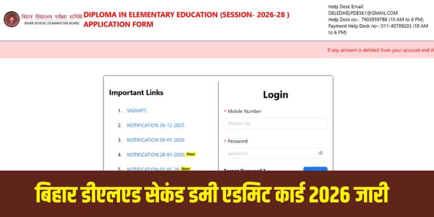 बिहार डीएलएड सेकंड डमी एडमिट कार्ड डाउनलोड करने के लिए उम्मीदवारों को अपने लॉगिन क्रेडेंशियल यूजर आईडी और पासवर्ड का उपयोग करना होगा। डीएलएड एडमिट कार्ड 10 फरवरी, 2026 तक डाउनलोड के लिए उपलब्ध रहेंगे।