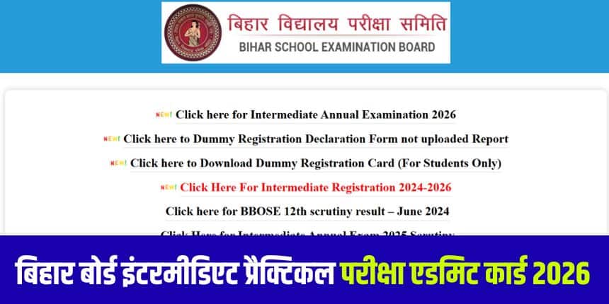 बिहार बोर्ड 12वीं की प्रैक्टिकल परीक्षाएं 10 जनवरी से 20 जनवरी तक होगी। परीक्षा में शामिल होने वाले विद्यार्थियों को अपना एडमिट कार्ड अपने संबंधित स्कूलों से प्राप्त कर लेना चाहिए, जिससे कि उन्हें परीक्षा में प्रवेश मिल सके।