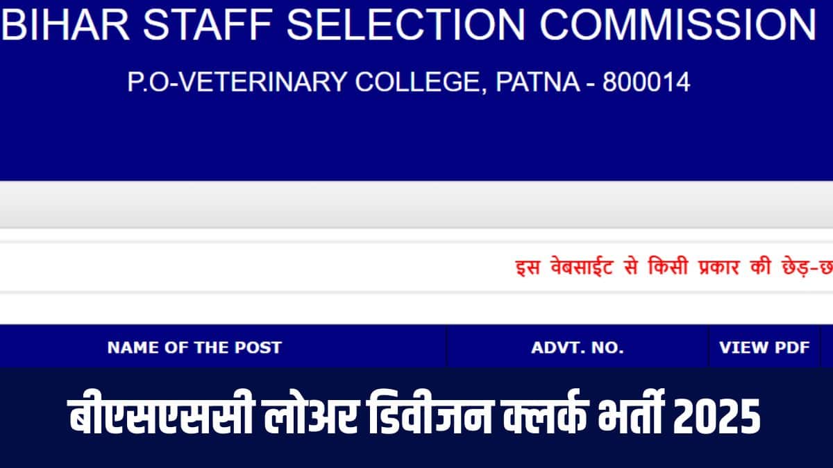 BSSC LDC Recruitment 2025: बीएसएससी लोअर डिवीजन क्लर्क भर्ती पंजीकरण शुरू, पात्रता मानदंड, आवेदन शुल्क जानें
