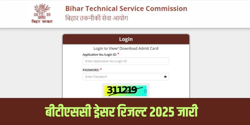 बीटीएससी ड्रेसर रिजल्ट 2025 डाउनलोड करने के लिए उम्मीदवारों को अपनी पंजीकरण संख्या और जन्मतिथि का उपयोग करना होगा।