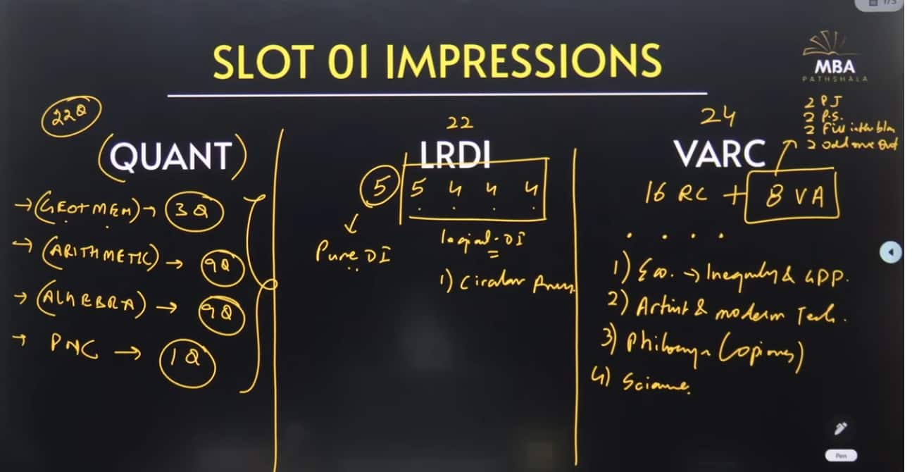 डेटा इंटरप्रिटेशन एंड लॉजिकल रीजनिंग (DILR) - इस सेक्शन में 22 प्रश्न थे, जिनमें से अधिकांश हल करने में आसान थे।