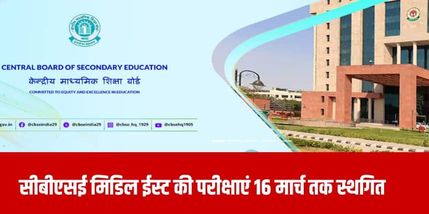 सीबीएसई द्वारा जारी एक आधिकारिक नोटिस के अनुसार, मिडिल ईस्ट के कुछ हिस्सों - बहरीन, ईरान, कुवैत, ओमान, कतर, सऊदी अरब और संयुक्त अरब अमीरात में वर्तमान स्थिति की गहन समीक्षा के बाद, बोर्ड ने कक्षा 12वीं की परीक्षाएं 16 मार्च तक स्थगित करने का निर्णय लिया है।