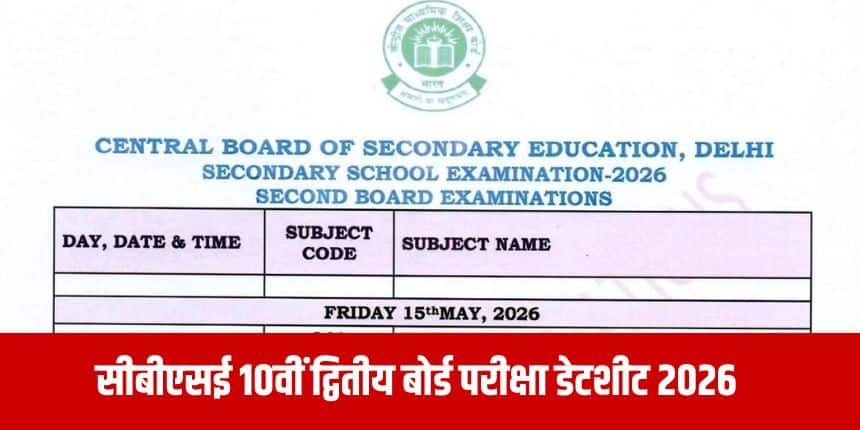 नई दिल्ली : केंद्रीय माध्यमिक शिक्षा बोर्ड (CBSE) ने कक्षा 10 की द्वितीय बोर्ड परीक्षा 2026 का कार्यक्रम घोषित कर दिया है। अधिसूचना के अनुसार, परीक्षाएं 15 मई से शुरू होकर 21 मई, 2026 को समाप्त होंगी। सीबीएसई 10वीं की द्वितीय परीक्षाएं एक ही शिफ्ट में सुबह 10:30 बजे से दोपहर 1:30 बजे तक आयोजित की जाएंगी।