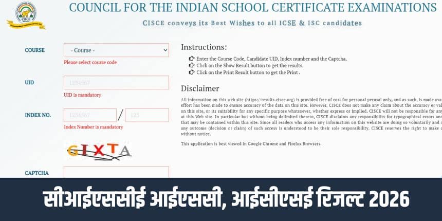 नई दिल्ली : काउंसिल फॉर द इंडियन स्कूल सर्टिफिकेट एग्जामिनेशंस (सीआईएससीई) (CISCE) द्वारा आईसीएसई (कक्षा 10) और आईएससी (कक्षा 12) के परिणाम अप्रैल 2026 के अंतिम सप्ताह तक घोषित किए जाने की उम्मीद है। परिणाम घोषित होने के बाद, सीआईएससीई अपनी आधिकारिक वेबसाइटों cisce.org और results.cisce.org पर परिणाम लिंक सक्रिय कर देगा।