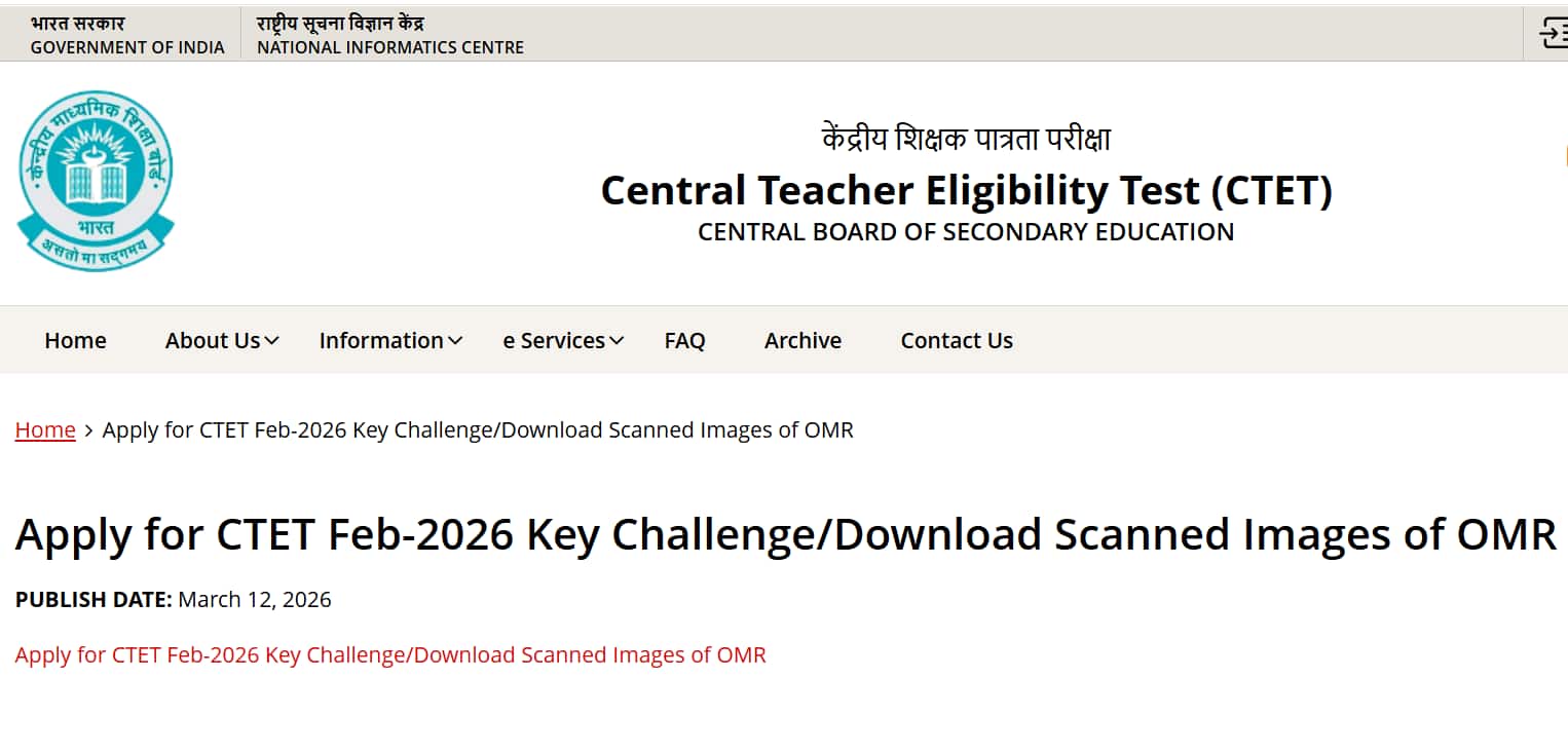 सीटेट ओएमआर शीट आधिकारिक वेबसाइट ctet.nic.in पर उपलब्ध हैं। सीटेट 2026 परीक्षा 7 और 8 फरवरी को आयोजित की गई।