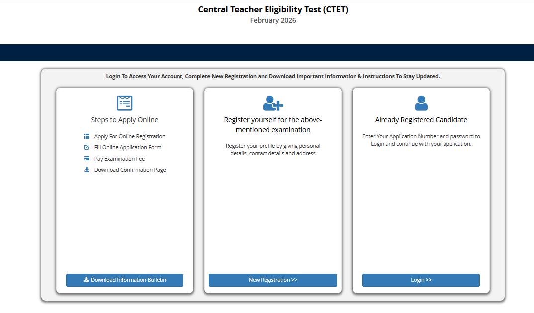 सीबीएसई ने पुष्टि की है कि सीटेट की आधिकारिक वेबसाइट ctet.nic.in पर जल्द ही एक विस्तृत सूचना बुलेटिन उपलब्ध होगा। इस बुलेटिन में पात्रता मानदंड, परीक्षा पाठ्यक्रम, शुल्क संरचना, परीक्षा केंद्रों की सूची और प्रमुख तिथियों की जानकारी होगी।