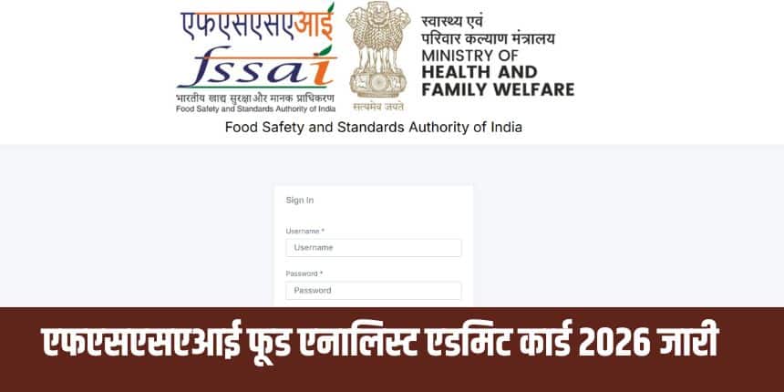 भारतीय खाद्य सुरक्षा एवं मानक प्राधिकरण (FSSAI) की आधिकारिक वेबसाइट पर एडमिट कार्ड डाउनलोड लिंक सक्रिय कर दिया गया है। उम्मीदवार केवल आधिकारिक वेबसाइट से ही एडमिट कार्ड डाउनलोड कर सकते हैं।