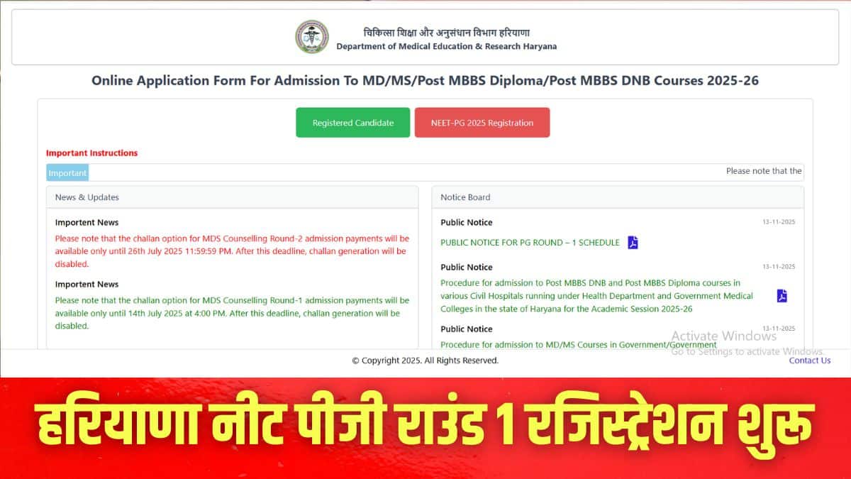 योग्य उम्मीदवार आधिकारिक वेबसाइट hry.online-counselling.co.in पर राउंड 1 में भाग लेने के लिए पंजीकरण कर सकते हैं।