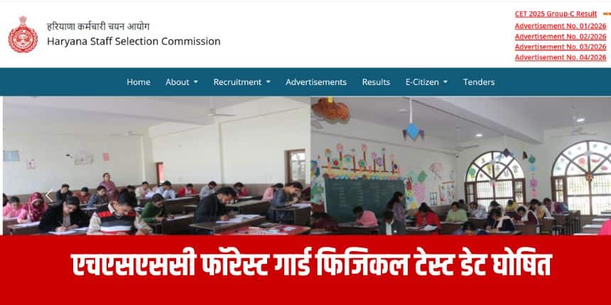 नई दिल्ली : हरियाणा कर्मचारी चयन आयोग (एचएसएससी) ने फॉरेस्ट गार्ड पद के लिए शारीरिक माप परीक्षण (पीएमटी) की संशोधित तिथि घोषित कर दी है। आधिकारिक सूचना के अनुसार, फॉरेस्ट गार्ड पदों के लिए पीएमटी 20 अप्रैल 2026 को सुबह 6:30 बजे से शुरू होगा।