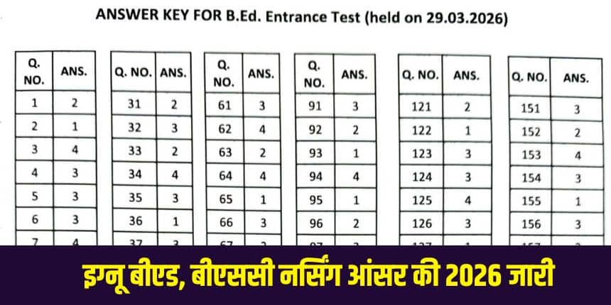 इग्नू बीएड, पोस्ट बेसिक बीएससी नर्सिंग प्रवेश परीक्षा 29 मार्च 2026 को आयोजित की गई थी। उत्तर कुंजी विश्वविद्यालय की आधिकारिक वेबसाइट पर रविवार यानी 26 अप्रैल, 2026 (शाम 6 बजे) तक उपलब्ध रहेगी।