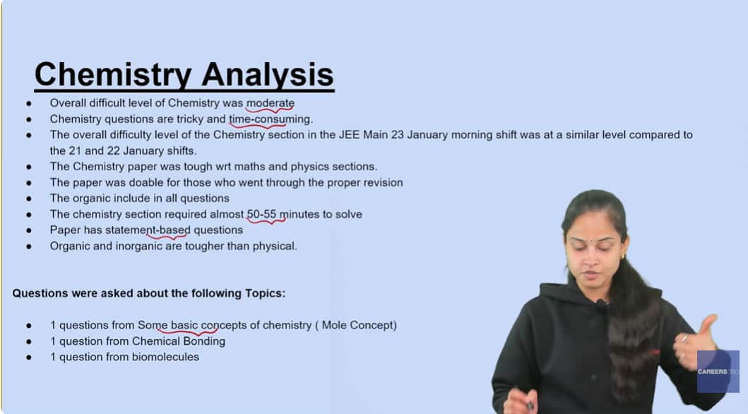 करियर्स360 के सब्जेक्ट एक्सपर्ट के अनुसार, जेईई मेन 2026 जनवरी 23 शिफ्ट 1 केमिस्ट्री पेपर के क्वेश्चन पेपर का एनालिसिस इस प्रकार है। (इमेज-यूट्यूब/BtechCareers360)