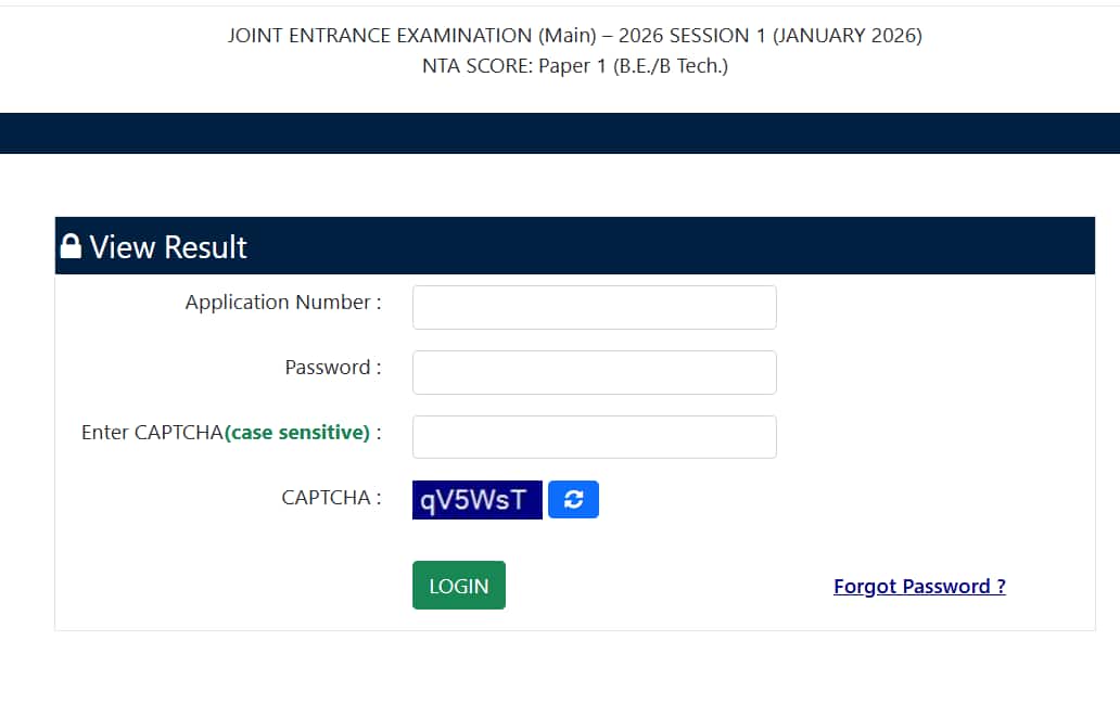 जेईई मेन्स 2026 का परिणाम देखने के लिए, छात्रों को अपना वैध आवेदन नंबर, पासवर्ड या जन्मतिथि दर्ज करनी होगी।