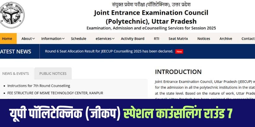JEECUP Counselling 2025: यूपी पॉलिटेक्निक स्पेशल काउंसलिंग राउंड 7 चॉइस फिलिंग शुरू, 9 सितंबर को सीट आवंटन