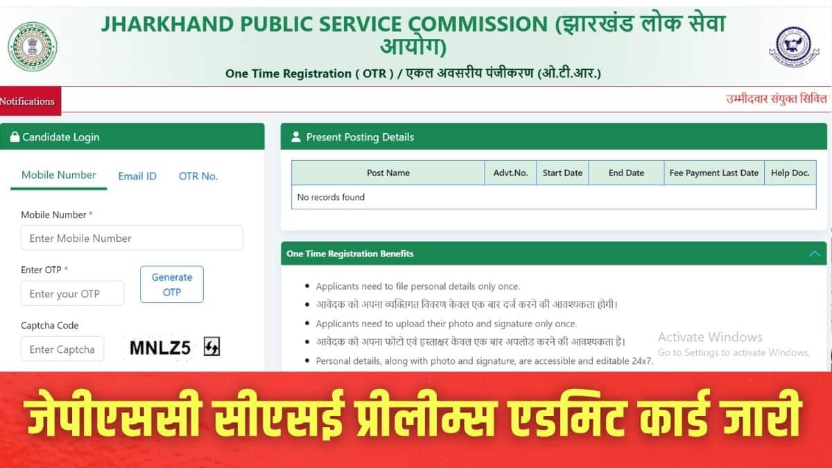 जेपीएससी सीएसई एडमिट कार्ड डाउनलोड करने के लिए, उम्मीदवारों को वन टाइम रजिस्ट्रेशन क्रेडेंशियल्स का उपयोग करके पोर्टल पर लॉग इन करना होगा।