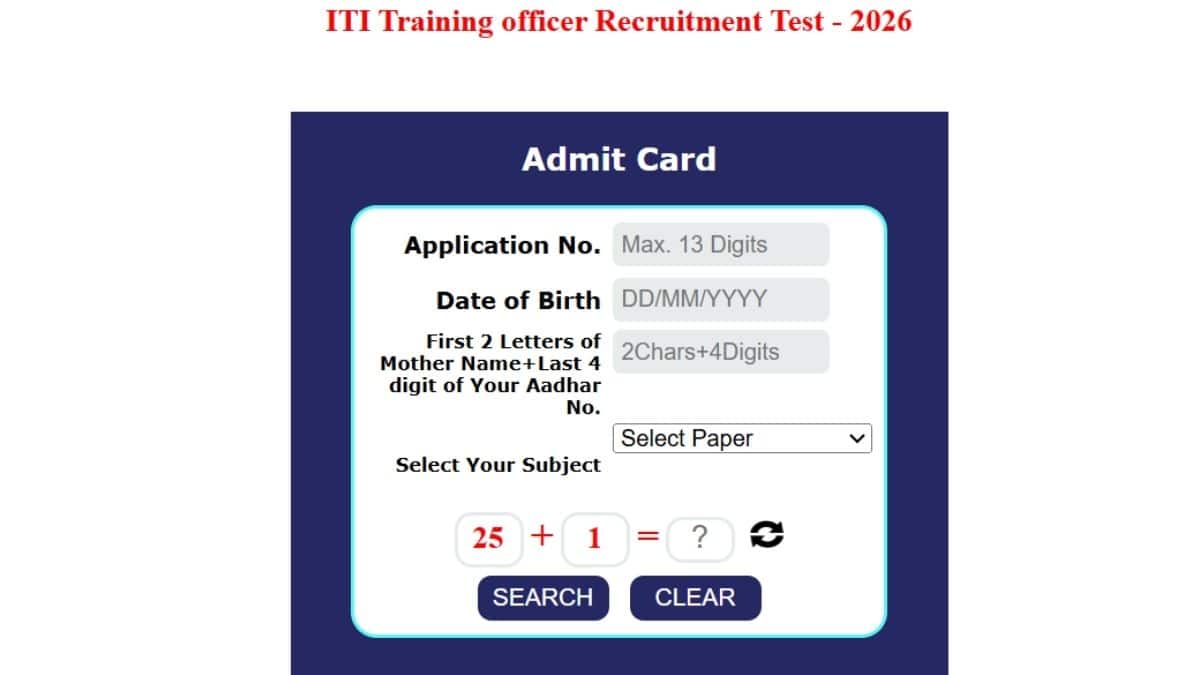 आईटीआई ट्रेनिंग ऑफिसर रिक्रूटमेंट टेस्ट 2026 का एडमिट कार्ड डाउनलोड करने के लिए आवेदन संख्या और जन्म तिथि जैसे लॉगिन क्रेडेंशियल की आवश्यकता होगी।