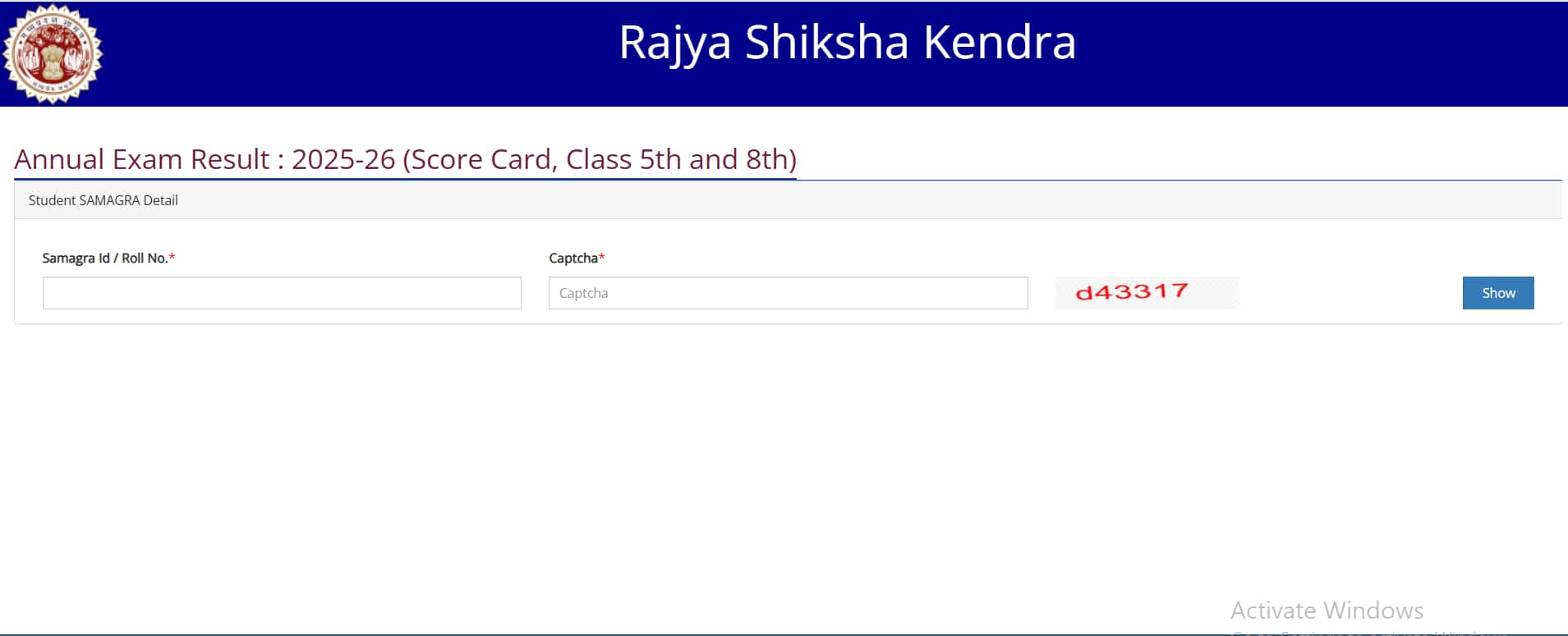 राज्य शिक्षा केंद्र 8वीं कक्षा का परिणाम 2026 देखने के लिए छात्रों को समग्र आईडी (Samagra ID) या रोल नंबर और कैप्चा कोड दर्ज करना होगा।
