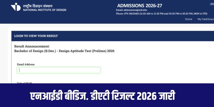 नई दिल्ली : नेशनल इंस्टीट्यूट ऑफ डिजाइन (एनआईडी) ने बीडिज. प्रारंभिक परीक्षा का परिणाम घोषित कर दिया है। परीक्षा में शामिल हुए उम्मीदवार आधिकारिक वेबसाइट admissions.nid.edu पर अपने ईमेल पते और जन्मतिथि के लॉगिन क्रेडेंशियल का उपयोग करके परिणाम देख और डाउनलोड कर सकते हैं।