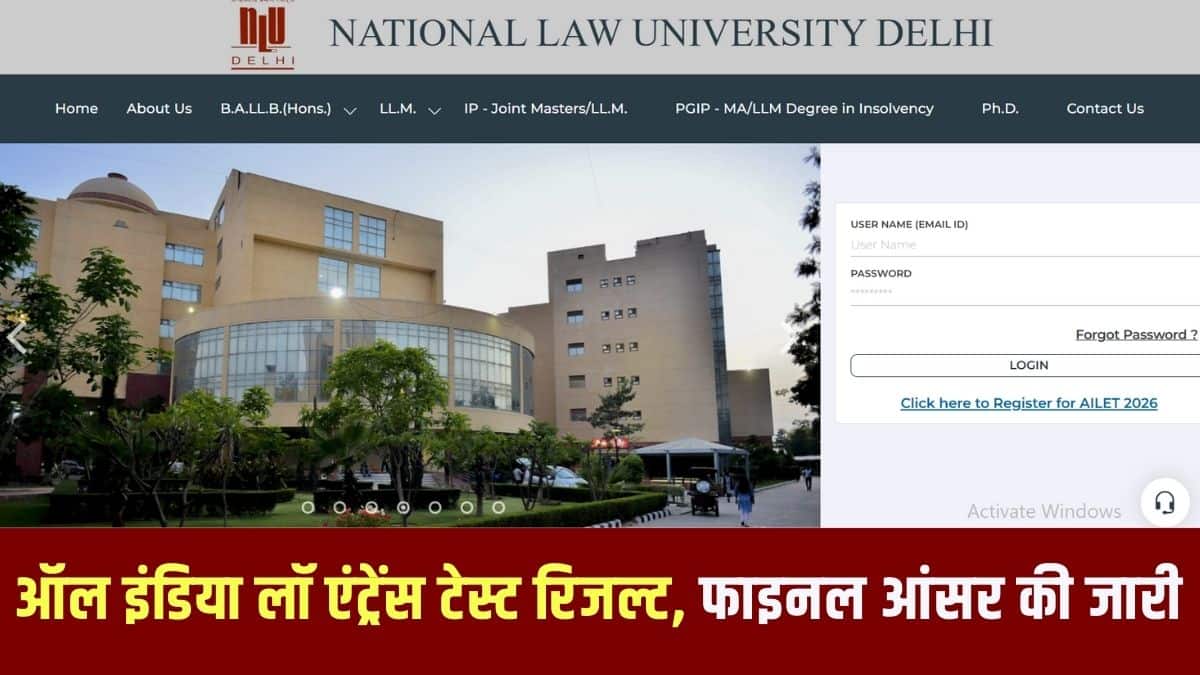 एनएलयू ने कहा है कि विश्वविद्यालय द्वारा फाइनल आंसर की जारी होने के बाद आंसर की पर अब कोई आपत्ति स्वीकार नहीं की जाएगी। बीए एलएलबी. (ऑनर्स) और एलएलएम. कार्यक्रमों में प्रवेश के लिए एआईएलईटी-2026 के परिणाम विश्वविद्यालय द्वारा 18 दिसंबर, 2025 को घोषित कर दिए गए हैं।