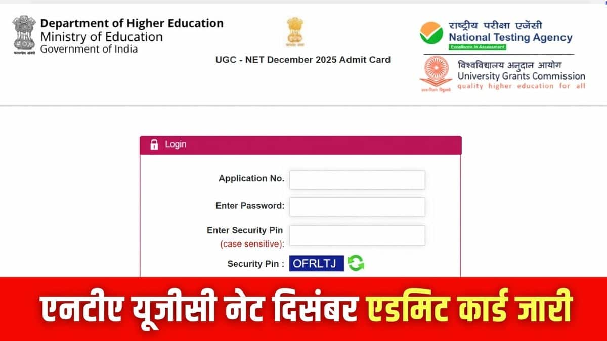 नई दिल्ली: नेशनल टेस्टिंग एजेंसी (एनटीए) ने 31 दिसंबर की यूजीसी नेट दिसंबर 2025 सेशन की परीक्षा के लिए एडमिट कार्ड जारी कर दिए हैं। उम्मीदवार अब अपनी हॉल टिकट ऑफिशियल वेबसाइट ugcnet.nta.nic.in से डाउनलोड कर सकते हैं। परीक्षा 31 दिसंबर से शुरू होने वाली है। यूजीसी नेट एडमिट कार्ड डाउनलोड करने के लिए, उम्मीदवारों को अपने एप्लीकेशन नंबर और पासवर्ड या जन्मतिथि का इस्तेमाल करके वेबसाइट पर लॉग इन करना होगा।