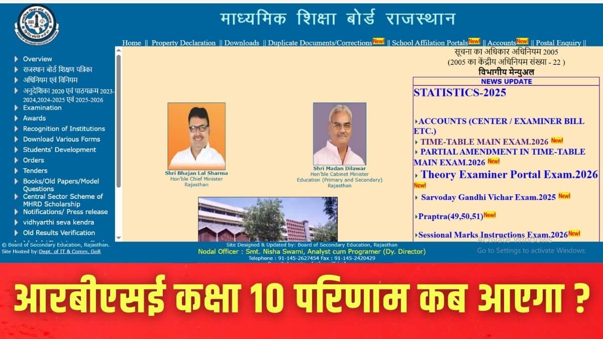 नई दिल्ली: माध्यमिक शिक्षा बोर्ड राजस्थान (आरबीएसई), अजमेर द्वारा आयोजित कक्षा 10 (माध्यमिक) परीक्षा 2026 के परिणाम कल तक घोषित होने की उम्मीद है। आरबीएसई कक्षा 10 रिजल्ट का लिंक आधिकारिक वेबसाइट rajeduboard.rajasthan.gov.in पर सक्रिय किया जाएगा। मीडिया रिपोर्टों के अनुसार, बोर्ड सचिव गजेंद्र सिंह राठौड़ ने बताया कि उत्तर पुस्तिकाओं के मूल्यांकन का कार्य अंतिम चरण में है, और परिणाम 20 मार्च तक जारी होने की उम्मीद है।