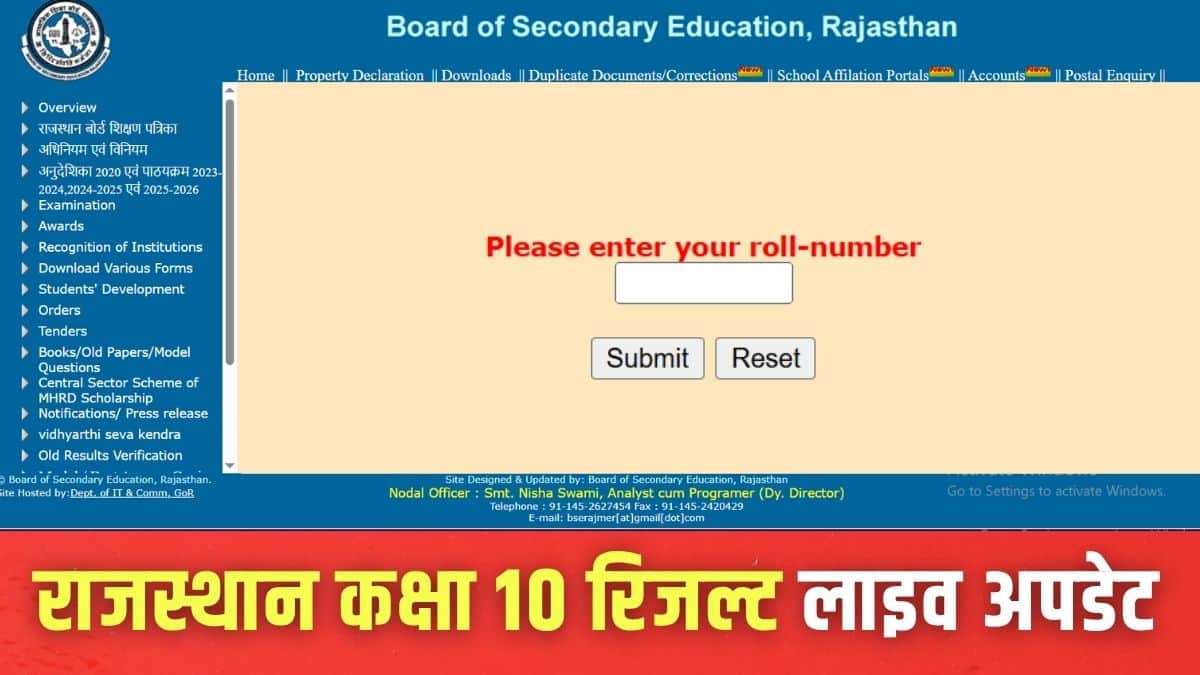 आरबीएसई 10वीं रिजल्ट 2026 लिंक एक्टिव होने के बाद, छात्र आधिकारिक वेबसाइटों rajeduboard.rajasthan.gov.in या rajresults.nic.in पर जाकर अपने आरबीएसई कक्षा 10 स्कोरकार्ड को देख या डाउनलोड कर सकेंगे।