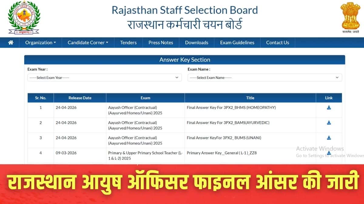 आरएसएसबी ने दिसंबर में हुई आयुष अधिकारी परीक्षा के लिए जनवरी में शुरुआती प्रोविजनल आंसर-की जारी की। उम्मीदवारों से आपत्तियां मांगी गई, और इन आपत्तियों की समीक्षा के बाद, फाइनल आंसर-की तैयार की गई है।