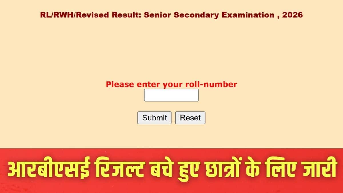 नई दिल्ली: माध्यमिक शिक्षा बोर्ड, राजस्थान (आरबीएसई) ने सीनियर सेकेंडरी परीक्षा 2026 के आरएल, आरडबल्यूएच और संशोधित परिणाम घोषित कर दिए हैं। बोर्ड ने उन छात्रों के मुख्य परिणाम जारी किए हैं, जिनके परिणाम तकनीकी या अन्य कारणों से विलंबित या रोक दिए गए थे। आरबीएसई कक्षा 12 रिजल्ट बोर्ड की आधिकारिक वेबसाइट rajeduboard.rajasthan.gov.in पर उपलब्ध हैं। इससे पहले, बोर्ड ने कक्षा 10 रिजल्ट 30 मार्च को जारी किए।