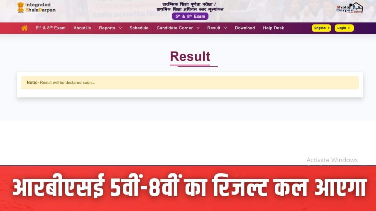 नई दिल्ली: राजस्थान माध्यमिक शिक्षा बोर्ड (आरबीएसई) और शिक्षा विभाग द्वारा आधिकारिक तौर पर पुष्टि की गई है कि आरबीएसई की कक्षा 5 और 8 के वर्ष 2026 के परिणाम कल घोषित किए जाएंगे। राजस्थान बोर्ड ने अपने आधिकारिक एक्स हैंडल पर आरबीएसई कक्षा 5 और 8 रिजल्ट डेट की घोषणा की है। आरबीएसई रिजल्ट शाला दर्पण पोर्टल rajshaladarpan.rajasthan.gov.in पर उपलब्ध होंगे। जहां छात्र रोल नंबर, जन्म तिथि या अन्य विवरण दर्ज करके अपना स्कोरकार्ड देख सकेंगे।