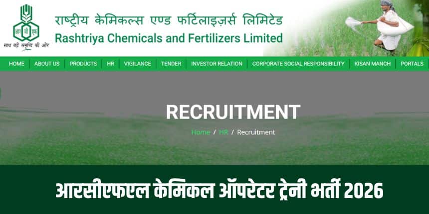 नई दिल्ली : राष्ट्रीय केमिकल्स एण्ड फर्टिलाइज़र्स लिमिटेड (आरसीएफएल) ने केमिकल ऑपरेटर ट्रेनी भर्ती के लिए पंजीकरण प्रक्रिया शुरू कर दी है। इच्छुक और पात्र उम्मीदवार आधिकारिक वेबसाइट rcfltd.com के माध्यम से ऑनलाइन आवेदन कर सकते हैं। आवेदन फॉर्म जमा करने की आखिरी तारीख 27 अप्रैल, 2026 है।