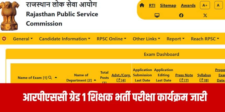 नई दिल्ली : राजस्थान लोक सेवा आयोग (आरपीएससी) ने प्रथम श्रेणी (1st Grade) शिक्षक भर्ती परीक्षा की तारीखों का ऐलान कर दिया है। परीक्षार्थी आयोग की आधिकारिक वेबसाइट rpsc.rajasthan.gov.in पर जाकर विस्तृत जानकारी देख और डाउनलोड कर सकते हैं।
