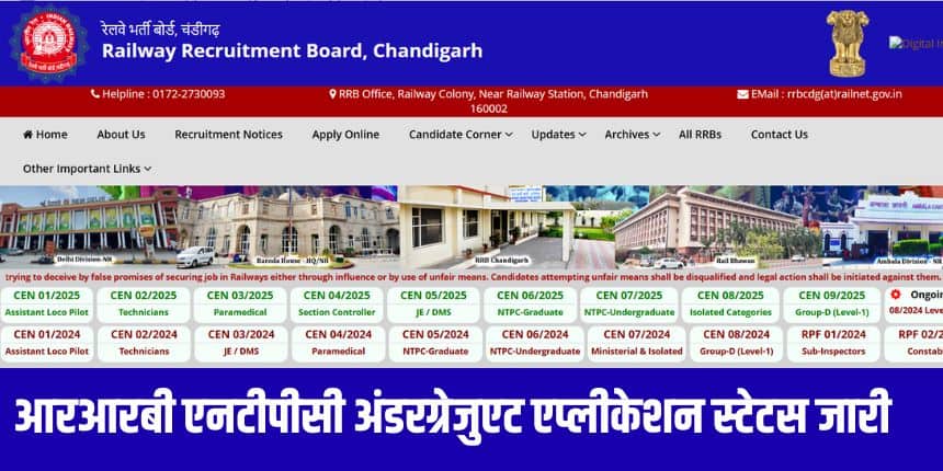 उम्मीदवारों के लिए अपने आवेदन की स्थिति की जांच करना अनिवार्य है। केवल उन्हीं उम्मीदवारों को अप्रैल 2026 में निर्धारित सीबीटी परीक्षा में बैठने की अनुमति होगी जिनके आरआरबी एनटीपीसी आवेदन स्वीकार किए गए हैं।
