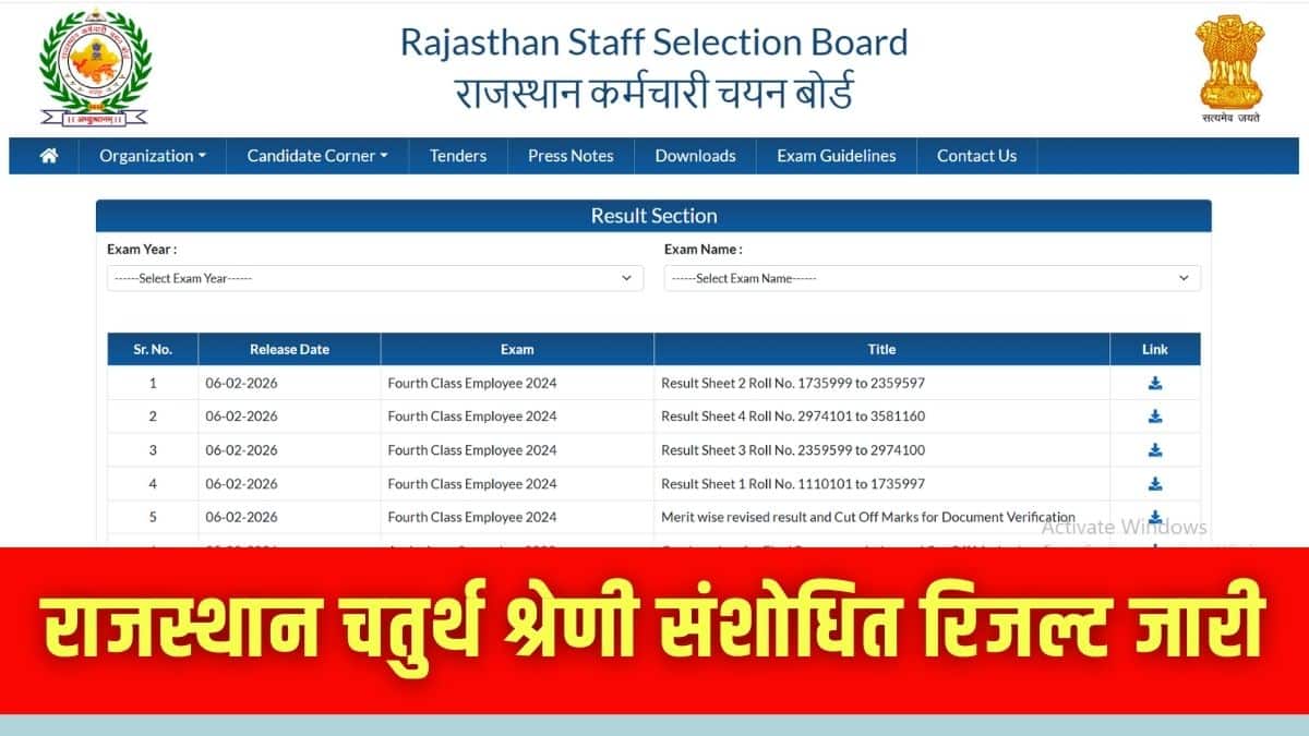 नई दिल्ली: राजस्थान स्टाफ सिलेक्शन बोर्ड (आरएसएसबी) ने अपनी ऑफिशियल वेबसाइट rssb.rajasthan.gov.in पर राजस्थान चतुर्थ श्रेणी भर्ती 2025 का रिवाइज्ड रिजल्ट पीडीएफ जारी कर दिया है। रिवाइज्ड रिजल्ट कुछ टेक्निकल गलतियों को ठीक करने, आपत्तियों पर ध्यान देने और ओएमआर शीट स्कैनिंग प्रोसेस को बेहतर बनाने के बाद जारी किया गया है। मूल रिजल्ट 16 जनवरी को जारी किया गया, जिसमें 53,749 पदों के लिए मेरिट लिस्ट और कट-ऑफ मार्क्स शामिल थे।