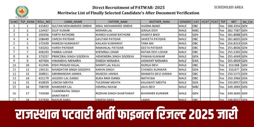 Also read RSSB Patwari Result 2025: आरएसएसबी पटवारी रिजल्ट घोषित, डायरेक्ट लिंक से चेक करें मेरिट लिस्ट पीडीएफ