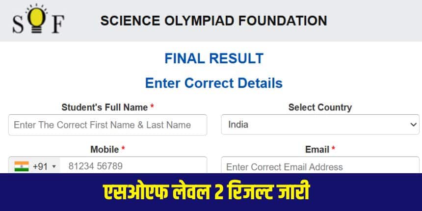 एसओएफ लेवल 2 रिजल्ट 2026 डाउनलोड करने के लिए लॉगिन क्रेडेंशियल के रूप में छात्र का पूरा नाम, पंजीकृत ईमेल आईडी, पंजीकृत मोबाइल नंबर, देश, कैप्चा सत्यापन कोड और ओलंपियाड चुनें (IMO,IEO,NSO) विकल्प भरना होगा।