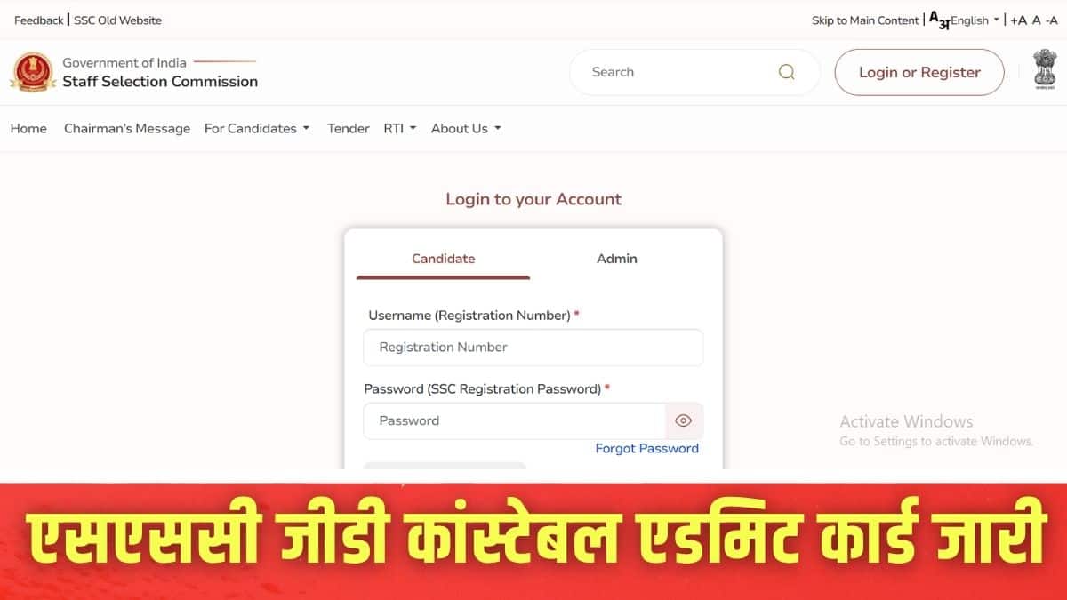 एसएससी जीडी एडमिट कार्ड डाउनलोड करने के लिए उम्मीदवारों को रजिस्ट्रेशन नंबर और पासवर्ड दर्ज करना होगा और उसके बाद कैप्चा कोड भरना होगा।