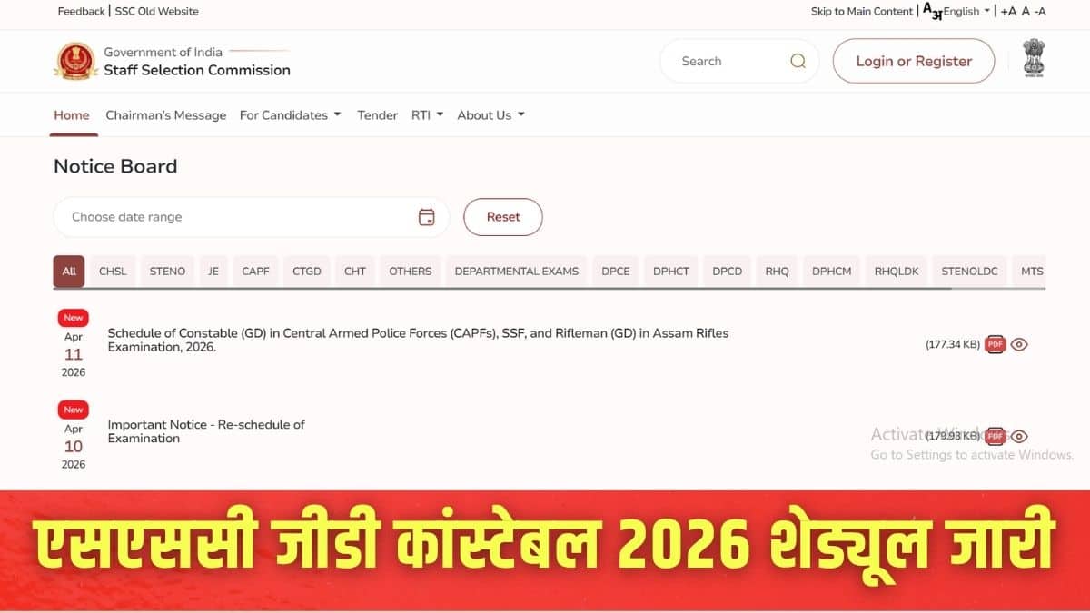 आयोग ने अपनी आधिकारिक वेबसाइट ssc.gov.in पर एसएससी जीडी कांस्टेबल परीक्षा 2026 का शेड्यूल प्रकाशित कर दिया है।