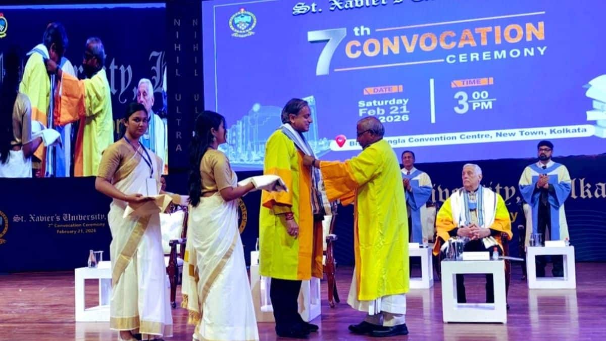 नई दिल्ली: कांग्रेस सांसद शशि थरूर को कोलकाता के सेंट जेवियर्स विश्वविद्यालय (St. Xavier's University) के सातवें दीक्षांत समारोह में मानद डी.लिट की उपाधि से सम्मानित किया गया। थरूर ने इसे भारत में अपनी पहली मानद डॉक्टरेट उपाधि बताया है।