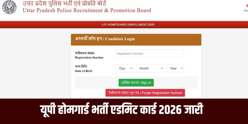 नई दिल्ली : उत्तर प्रदेश पुलिस भर्ती एवं प्रोन्नति बोर्ड (UPPRPB) ने यूपी होमगार्ड भर्ती एडमिट कार्ड 2026 जारी कर दिया है। परीक्षा के लिए पंजीकृत उम्मीदवार आधिकारिक वेबसाइट uppbpb.gov.in पर जाकर अपना एडमिट कार्ड डाउनलोड कर सकते हैं।