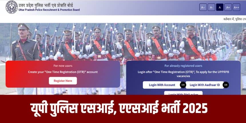 यूपी पुलिस एसआई, एएसआई भर्ती के लिए आवेदन करने वाले अभ्यर्थियों को सबसे पहले बोर्ड की आधिकारिक वेबसाइट uppbpb.gov.in पर जाकर वन टाइम रजिस्ट्रेशन (OTR) करना होगा। इसमें आधार बेस्ड e-KYC के जरिए अभ्यर्थी का वेरिफिकेशन होगा। इसके बाद ही मुख्य आवेदन फॉर्म भरा जा सकेगा।