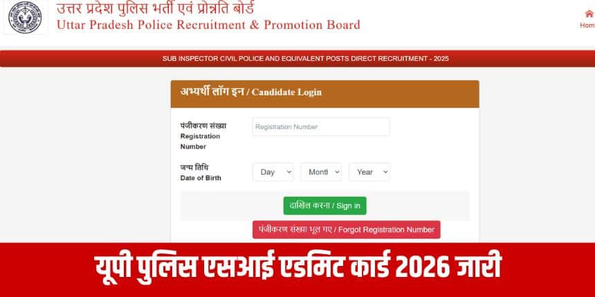 उत्तर प्रदेश पुलिस भर्ती एवं प्रोन्नति बोर्ड द्वारा सब इंस्पेक्टर भर्ती 2025 की लिखित परीक्षा 14 तथा 15 मार्च, 2026 को दो पालियों में आयोजित की जाएगी। परीक्षा में शामिल होने वाले उम्मीदवारों को अपना एडमिट कार्ड एग्जाम सेंटर पर साथ लेकर जाना होगा।