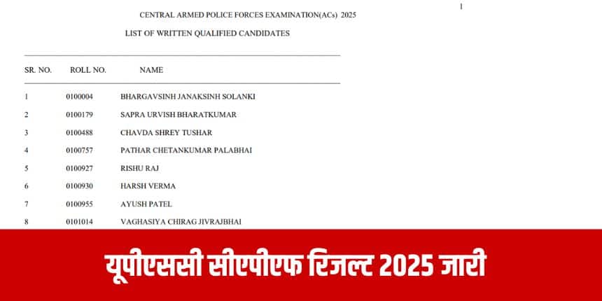 नई दिल्ली : संघ लोक सेवा आयोग (यूपीएससी) ने यूपीएससी सीएपीएफ 2026 का परिणाम घोषित कर दिया है। सीएपीएफ (सहायक कमांडेंट) परीक्षा में शामिल हुए उम्मीदवार अब अपना रिजल्ट आधिकारिक वेबसाइट upsc.gov.in पर देख सकते हैं और मेरिट सूची पीडीएफ डाउनलोड कर सकते हैं।