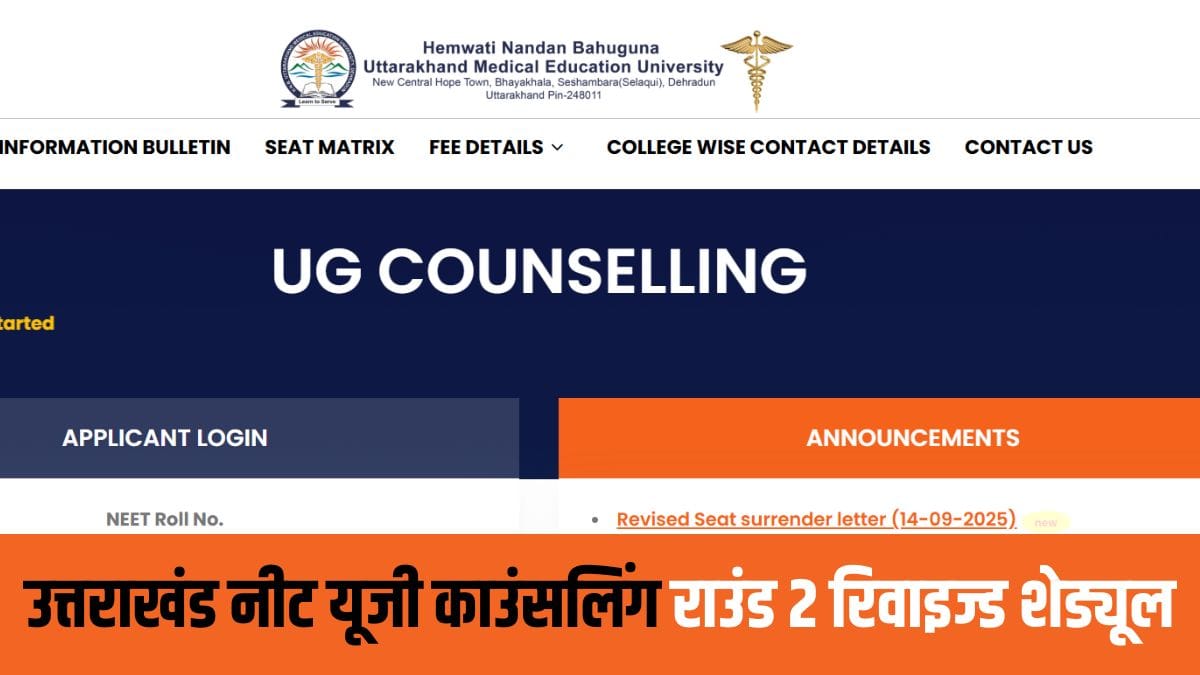 Uttarakhand NEET UG Counselling 2025: उत्तराखंड नीट यूजी काउंसलिंग राउंड 2 शेड्यूल रिवाइज्ड, सीट आवंटन डेट