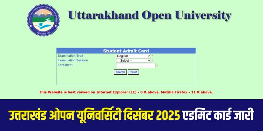 उत्तराखंड ओपन यूनिवर्सिटी शीतकालीन परीक्षा के लिए दिसंबर 2025 सत्र का एडमिट कार्ड डाउनलोड करने के बाद सभी उम्मीदवारों को सलाह दी जाती है कि उसमें अपना नाम, परीक्षा का नाम, परीक्षा का समय एवं तिथि आदि की जानकारी चेक कर लें।