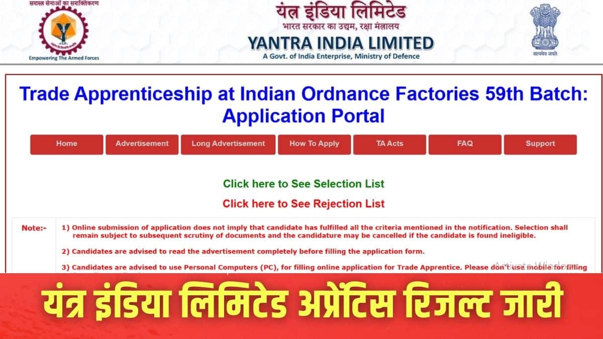 उम्मीदवार नीचे बताए स्टेप्स के माध्यम से यंत्र इंडिया लिमिटेड अप्रेंटिस रिजल्ट देख सकते हैं-